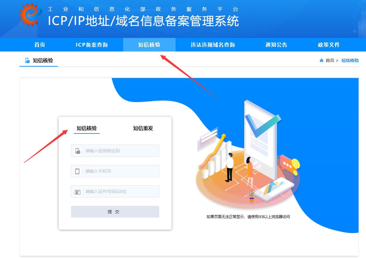 点击打开短信链接可进行验证:(验证网址:beian.miit.gov.cn )